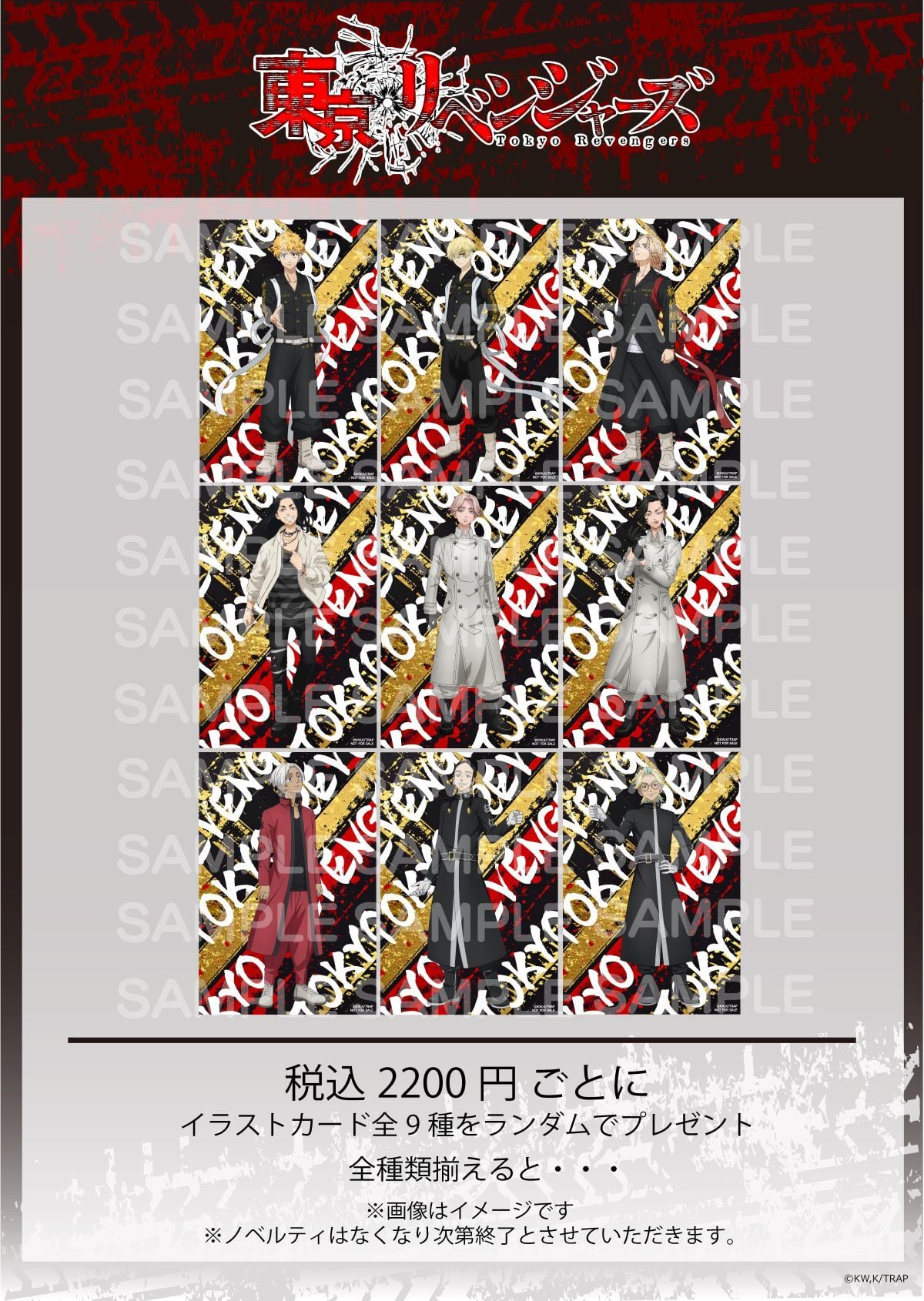 先日、各都市にて実施した 『東京リベンジャーズ』POP UP SHOPより ミニ色紙の発売です! ※全9種コンプリート仕様 サイズ:135x120㎜以内 素材:上質紙