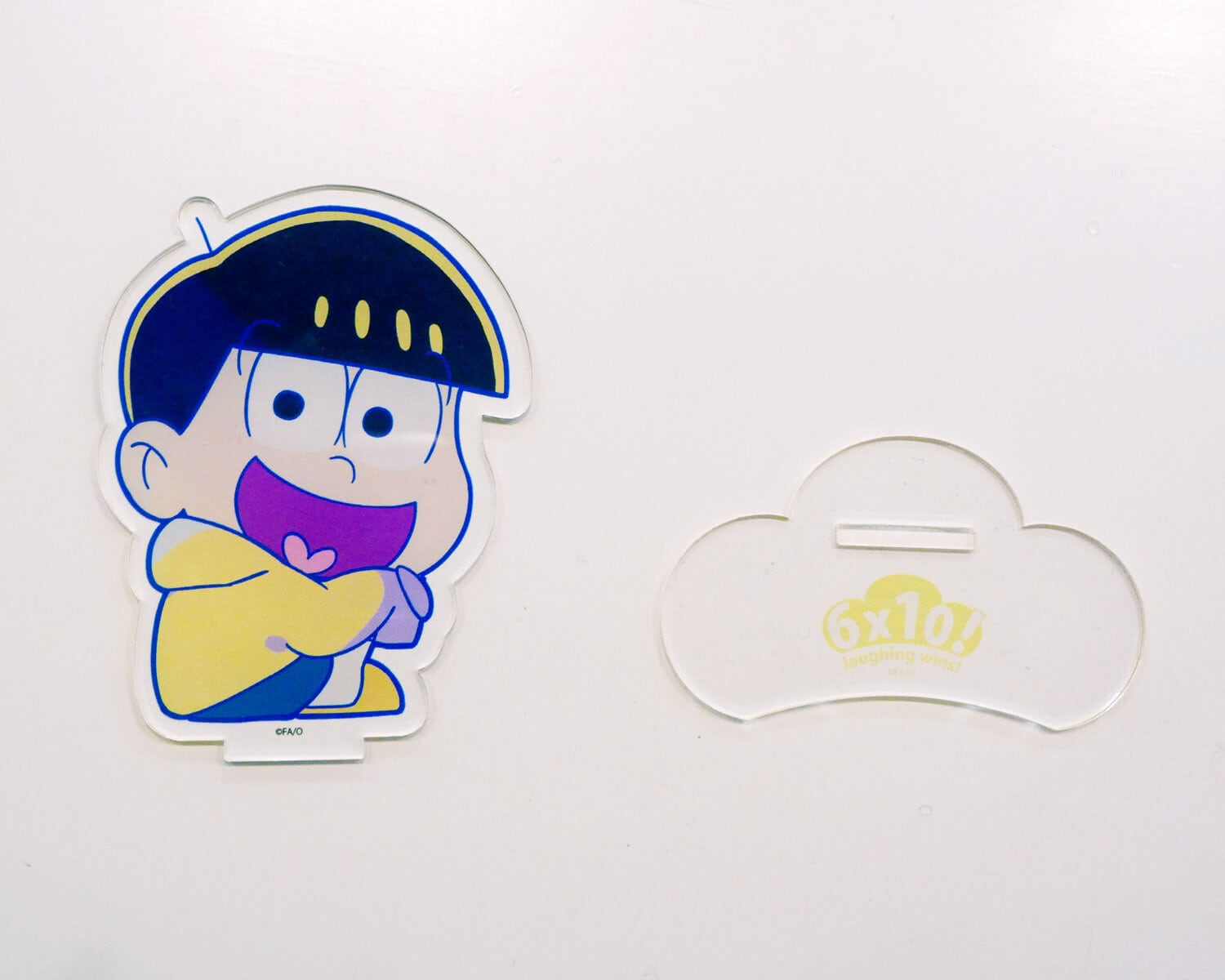 先日、ラフォーレ原宿にて実施した おそ松さん10周年記念POPUPより アクリルスタンドの発売です! サイズ:約80×80㎜以内 5㎜厚 素材:アクリル